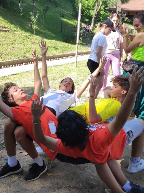 Cursuri non-formale de limba engleza (3 ore zilnic) cu vorbitori nativi. Personal international din peste 20 de tari, pentru activitatile distractive, sportive, de team building sau de cunoastere, de peste zi. International day, Video projects, Talent Show, T-shirt design, Camp fire, Karaoke